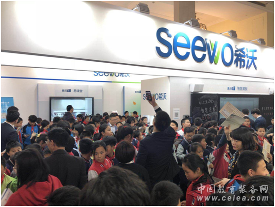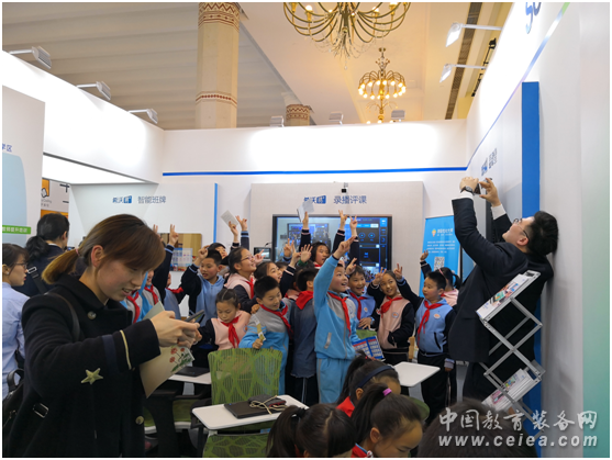 老師會(huì)帶領(lǐng)學(xué)生一同參觀展會(huì),將教育信息化的最新理念傳達(dá)給學(xué)生,是上海教育博覽會(huì)的一大特色。而作為教育信息化龍頭企業(yè),希沃的展位吸引了眾多學(xué)生,一度被圍得水泄不通。