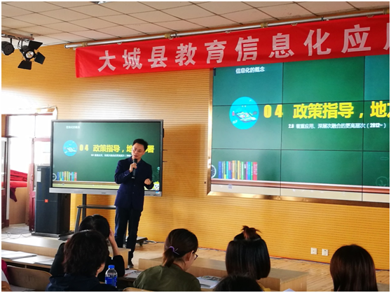 大城縣教育局教儀站站長李景深首先致辭,拉開了本次活動的序幕。李站長表示本次教育信息化應用能力提升活動,對大城縣教育信息化發展有著重要意義和價值,希望大家能將學習到的理念和方法應用到學校的信息化建設和管理中去,切實提升學校的教育信息化水平。