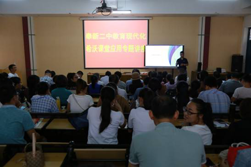 今年4月教育部發布了《教育信息化2.0行動計劃》,奉新二中經過認真調研,綜合決策,按照行動計劃中"試點引領,強化培訓"的方法要求,奉新二中特邀希沃培訓講師為全校老師開展信息技術應用培訓。在一周的時間內,希沃講師對奉新二中350名教師進行了全面培訓,隨后全校還將進行信息化應用高級培訓。