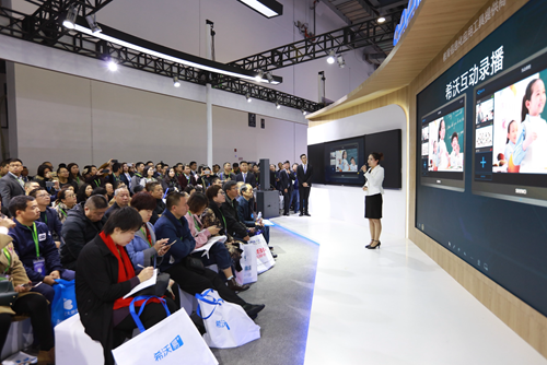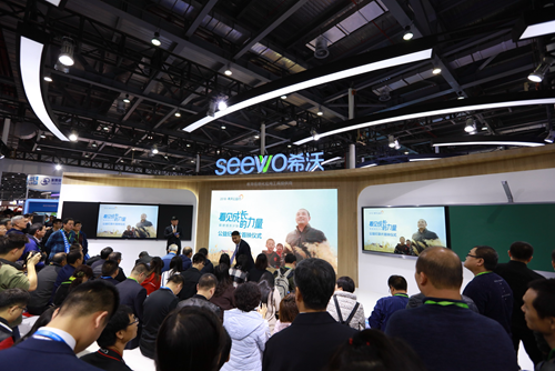2018希沃公益行紀錄片在展會現(xiàn)場首映,觀眾紛紛駐足觀看。