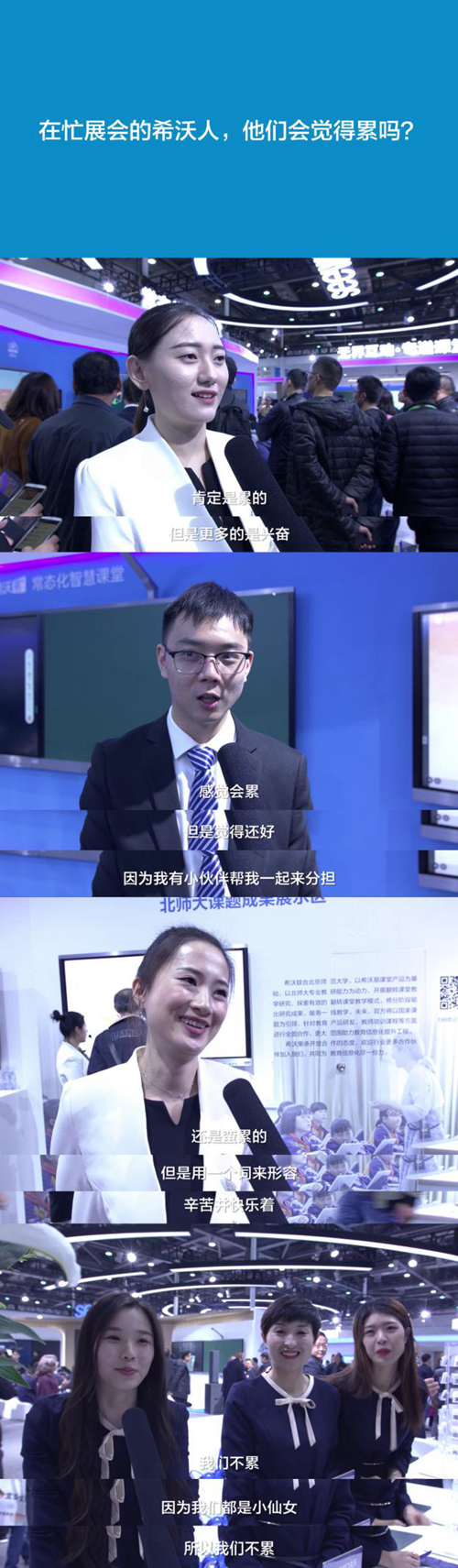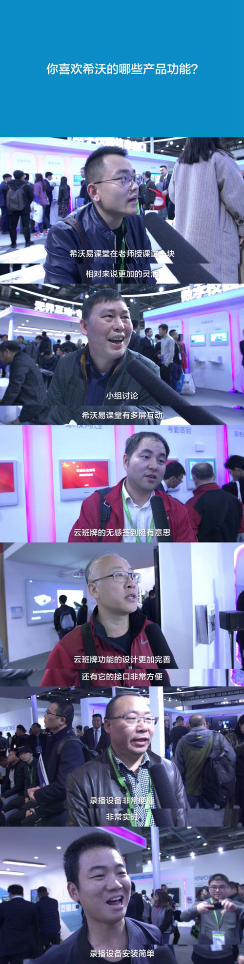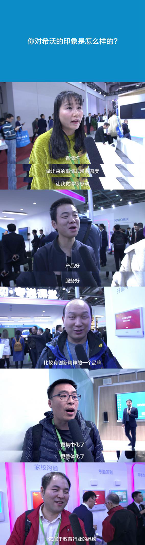剛看完希沃公益行紀錄片的觀眾感動地告訴我們,希沃是一個很有情懷的品牌,而公益行做的都是溫暖人心的事;路過的一位參展者說,他來自山區(qū),非常喜歡互動錄播,當?shù)乩蠋熜枰@樣的設(shè)備共享優(yōu)質(zhì)教學資源。感謝他們的肯定,讓我們發(fā)現(xiàn),做教育的更多意義所在。