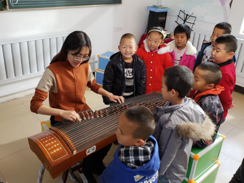孟老師看到學(xué)校有一臺教育局配備的古箏,但沒有老師會彈,沒法教給孩子們。于是借著假期,孟老師就在家附近自己掏錢報了古箏課程。只學(xué)了一期的課程,甚至彈奏的時候都并不是非常熟練,她還是給學(xué)校的孩子們開了古箏課,她說:“我還年輕,學(xué)東西快,如果我不學(xué),就沒有人能教給孩子們了。”