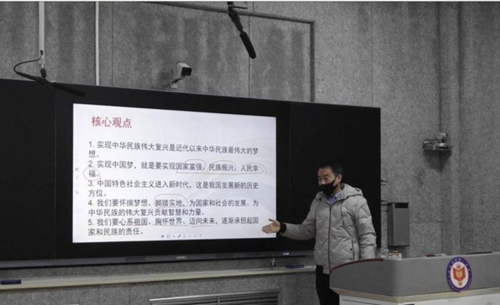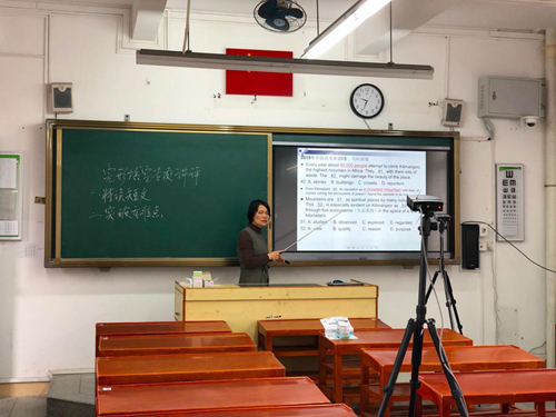 “站在講臺上講課,面對熟悉的教學(xué)環(huán)境,就跟平時一樣,學(xué)生就像坐在我們跟前聽課。”