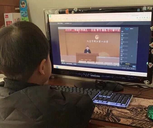 義烏稠江一小的學(xué)生在家學(xué)習(xí)
