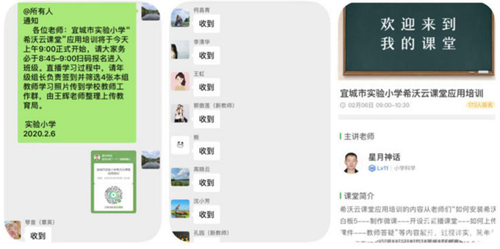 為全力保障師生使用體驗,希沃運營、客服小伙伴自發線上到崗。在區縣、學校、教授、學生家長的線上直播群里,都能發現他們的身影。在這些活躍的群聊中,張站很欣慰地看到師生們對希沃云課堂的認可。