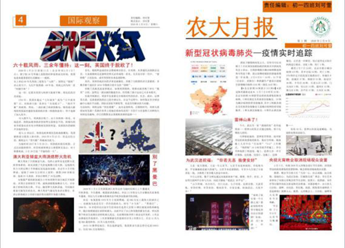 中國農業大學附屬中學的老師們時刻關注疫情的變化,引導著一群熱血青年思考自己身上的責任與義務,時刻與祖國同呼吸共命運。農大附中黨委書記、校長王軍參加第一次區教委疫情防控電話會議以后,農大附中在第一時間快速做出反應和應對措施,成立了防控期間教學工作領導小組,制定具體的教學實施預案并落實,強有力的保障全校師生的學習生活。