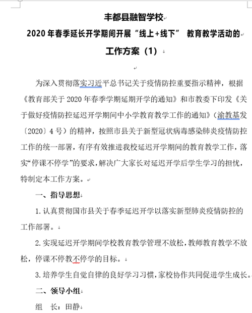 面對(duì)疫情,豐都融智學(xué)校為相應(yīng)政策號(hào)召,貫徹春季延遲開(kāi)學(xué)及落實(shí)新型肺炎疫情防控的工作部署,部署各種舉措保障停課不停教、停課不停學(xué),著力培養(yǎng)學(xué)生自覺(jué)自律學(xué)習(xí)習(xí)慣,家校共育促進(jìn)學(xué)生成長(zhǎng),大力開(kāi)展“線上+線下”