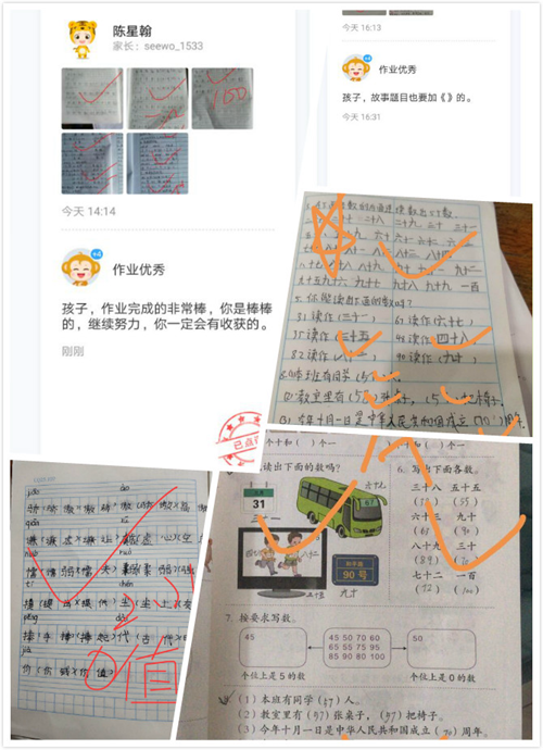 在“線上+線下”教學(xué)中,家校共育是保證教訓(xùn)閉環(huán)非常重要的一塊拼圖,老師們通過(guò)班級(jí)優(yōu)化大師給學(xué)生們布置作業(yè),在線批改,記錄學(xué)生行為和評(píng)價(jià)數(shù)據(jù)完善課后+課前的一環(huán),同時(shí)