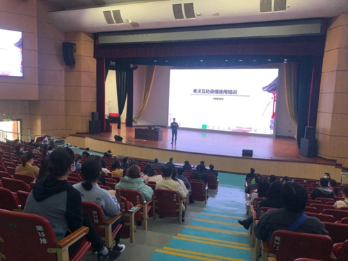 為了讓老師們能夠熟練使用設(shè)備分班教學(xué),希沃培訓(xùn)師們還專門針對(duì)上課場(chǎng)景為他們進(jìn)行培訓(xùn),從基礎(chǔ)功能開啟錄制、直播,到完整的同屏操作、互動(dòng)答題等等均做了詳細(xì)講解,同時(shí),每個(gè)學(xué)校均派工作人員進(jìn)行駐點(diǎn)支持,以保證首日上課的順利進(jìn)行。