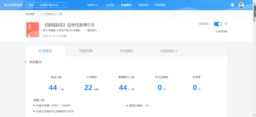 在學習任務單的驅動下,學生自主完成任務,并拍照上傳。教師在教師空間作業報告可以清晰了解作業上交及質量情況。
