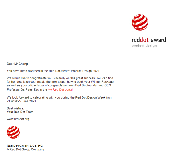 據悉,紅點獎源自德國,是與IF設計獎齊名的一個工業設計大獎,也是世界上知名設計競賽中最大最有影響的競賽。紅點產品設計大獎創辦于 1955
