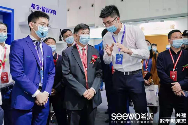 在展會現場,省裝備協會領導一行參觀了希沃展位。在體驗希沃產品、方案,并了解了其在四川全省的落地應用情況后,領導們對希沃的產品及發展現狀表示了高度肯定。