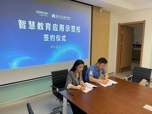 瀘州天立春雨學校楊兵校長同希沃學務事業部全國運營顧問馮智慧完成智慧教育應用示范校合作簽約。