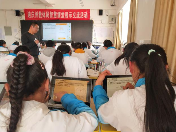 迪慶州州直屬學(xué)校于2019年10月引入希沃易課堂,在迪慶民族中學(xué)、迪慶藏文中學(xué)、香格里拉中學(xué)開(kāi)展智慧課堂建設(shè),為進(jìn)一步促進(jìn)教師教學(xué)理念的轉(zhuǎn)變,結(jié)合教學(xué)深入探索智慧課堂教學(xué)模式,深化學(xué)生智能終端設(shè)備的教學(xué)應(yīng)用,2021年5月24日,迪慶州教體局智慧課堂展示交流活動(dòng)成功舉辦,通過(guò)校際展示交流,搭建起區(qū)域間教師相互學(xué)習(xí)的平臺(tái)。