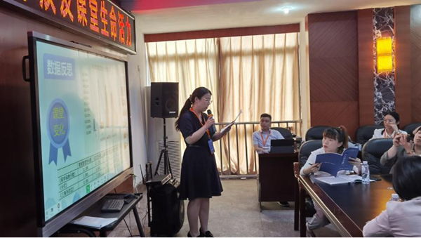 希沃學務(wù)事業(yè)部教研顧問劉璐,就宜賓六中的智慧課堂教研服務(wù)推進、教研初顯成效以及共促教學發(fā)展等三方面內(nèi)容,結(jié)合本校實際案例進行了分享。她指出,希沃易課堂教研資源的持續(xù)投入,為學校帶來了教育教學研討機制完善的改變;為老師帶來了教學與信息技術(shù)深度融合的改變;為學生帶來了輕松學、高效用的改變。希沃也將持續(xù)助力學校智慧教學探索與教育開展,讓信息技術(shù)更好服務(wù)于教學。