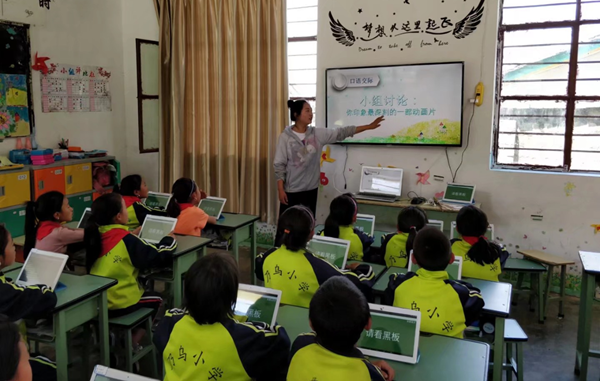 于是,曹本華充分發(fā)揮自身在教育信息化領(lǐng)域的優(yōu)勢(shì),決定深耕當(dāng)?shù)赝茝V“互聯(lián)網(wǎng)+教育”模式。曹本華沒有選擇條件最好的學(xué)校作為試點(diǎn),而選擇了一所位于大山溝中的鄉(xiāng)村小學(xué)——乃烏村小。這個(gè)學(xué)校僅有一位教語文的胡老師和一位教數(shù)學(xué)的白老師以及校內(nèi)三十多名學(xué)生。上午十點(diǎn)之前,學(xué)生總是到不齊,有的學(xué)生甚至不愿意到學(xué)校來上課。當(dāng)老師們聽說要在這里開展“互聯(lián)網(wǎng)+教育”試點(diǎn),他們非常高興。因?yàn)閷?duì)于剛畢業(yè)的他們來說,這是一個(gè)成長(zhǎng)的機(jī)會(huì)。于是,在當(dāng)?shù)仡I(lǐng)導(dǎo)和曹本華的協(xié)助下,乃烏村小引進(jìn)了兩臺(tái)55寸大電視和希沃白板等教學(xué)工具。
