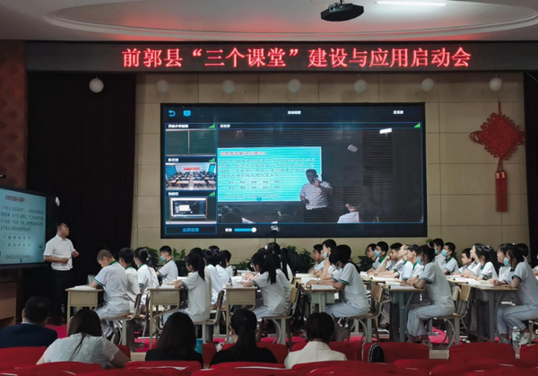 為深入貫徹落實教育部《關于加強“三個課堂”應用的指導意見》、吉林省教育廳《關于推進全省中小學“三個課堂”應用實施方案》等文件精神,嚴格執行松原市教育局關于三個課堂基礎環境建設與應用方面的相關要求,實現前郭縣“三個課堂”常態化應用,推進區域教育均衡發展。6月18日,一場由前郭縣教育局主辦、以加強常態化應用與建設為主題的“三個課堂”線上+線下推進會在前郭三中成功舉辦。希沃全程助力,為前郭縣三個課堂啟動會順利舉辦提供有力的技術支持服務保障。
