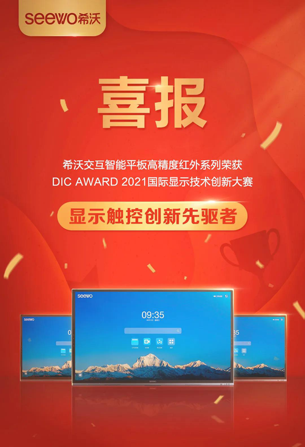 AWARD2021國際顯示技術創新大獎旨在對顯示產業技術未來發展趨勢、產品與技術創新、創新應用等各方面具有突出貢獻和重要影響的產品或解決方案給予認可和表彰。希沃交互智能平板高精度紅外系列能獲此殊榮,不僅是評委和行業人士對其產品實力的高度肯定,也是希沃創新技術的有力證明。