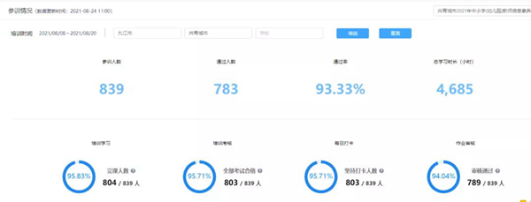 在這2天的直播課程學(xué)習(xí)中,老師們的參與熱情高漲,學(xué)習(xí)氛圍濃烈,收獲了不少寶貴的知識(shí)。此次培訓(xùn),共計(jì)2天直播課程,7天的線上研修學(xué)習(xí),參訓(xùn)學(xué)校涵蓋全縣20所學(xué)校,參訓(xùn)老師高達(dá)839人。培訓(xùn)結(jié)束后,共有783位老師通過培訓(xùn),通過率達(dá)到93.3%。培訓(xùn)讓教師了解并掌握課件制作的能力,幫助其利用信息化工具制作生成式互動(dòng)式的課件進(jìn)行互動(dòng)性教學(xué)。