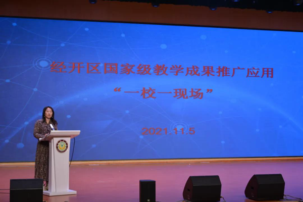 經區管委分管主任、威海市教科院院長、經區教研中心主任、各學校校長和老師們參與到本次成果推廣應用活動中,分享展示了近幾年全區先進的教育理念和扎實的教學能力。本次“一校一現場”采取“現場+直播”的方式,各中小學校相關教師觀看各實驗校的現場直播。