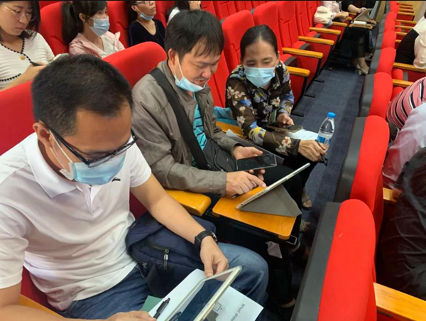 緊接著,王麗老師給在座的各位老師分享《專遞課堂模式下的信息技術與學科融合》講座,將信息技術與學科融合教學中的困難點很好的結合案例進行分析,引得在場的觀眾掌聲不斷。
