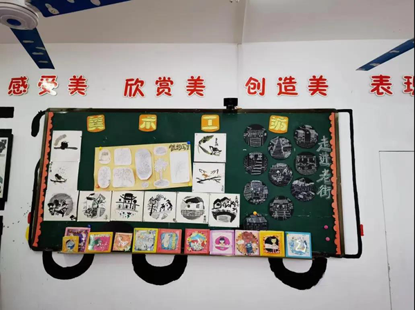 在美術教室中,老師向我們介紹道:長涂中心小學的美術雕刻是獨具特色的,在美術老師王晶的指導引領下,學校師生板雕創作正如火如荼進行著,該校學生的板雕作品也在市、縣里多次獲獎。近年來,學校也將簡單的泡沫板雕刻改為難度系數更高的硬板雕刻,作品內容也更多元化,包括軍艦、坦克等軍事武器類型。