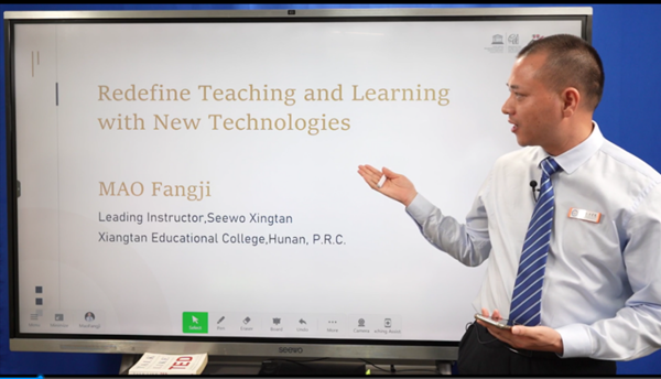 ▲希沃杏壇導師毛方吉為亞非地區教師分享信息化教學方法