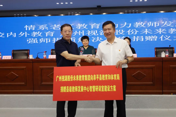隨后,廣州視源股份未來教育集團(希沃)副總裁魏振水向河北阜平縣捐贈價值500000元的縣級教師發(fā)展中心智慧研訓室,通過硬件、軟件與教師培訓服務助力阜平教師專業(yè)發(fā)展。