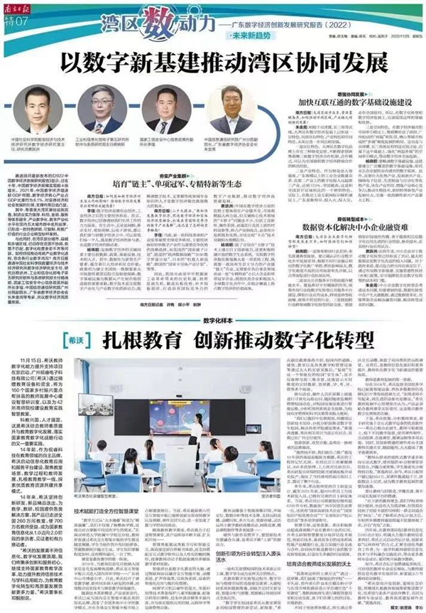 其中,作為數字化樣本,《南方日報》在“灣區數動力”特07版聚焦希沃,對希沃深耕教育、助力教育數字化轉型進行全方位觀察。以下為報道原文: