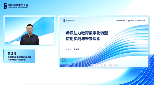 11月30日,2022年騰訊全球數字生態大會舉辦。會上,借助視源股份未來教育集團副總裁、開得聯智能科技董事長黃逸濤關于《希沃助力教育數字化轉型應用實踐與未來探索》主題演講,希沃展現出過去十年來其在教育數字化領域的亮眼“成績單”,以及希沃正在探索的未來校園藍圖。