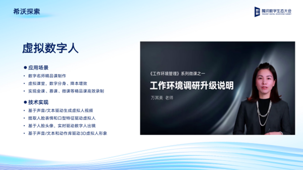 面向未來,我們正在探索虛擬數字人在精品課建設中的應用和數字孿生技術在校園業務場景的應用,實現教室和校園的虛擬化、數字化,為未來教育提供更多可能。