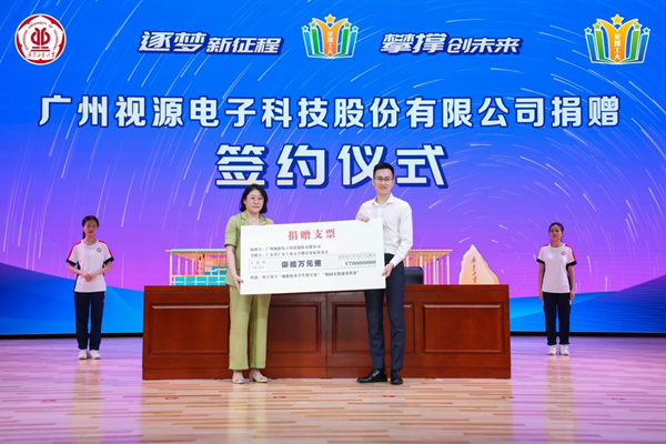 據悉,為進一步發揮優秀學生模范帶頭作用,樹立先進典范,視源股份與廣東工業大學共同設立“視源優秀學生獎學金”項目,以此鼓勵廣工學子精研專業、不斷創新,為粵港澳大灣區發展貢獻力量;顒由,校企雙方代表簽訂捐贈協議,并進行支票頒贈儀式。
