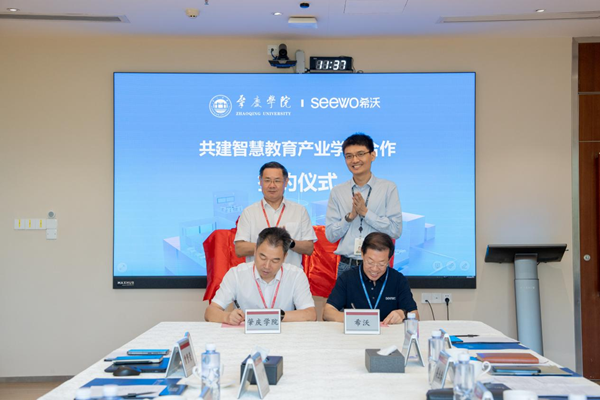 為探索應用數字化加強教師隊伍建設新模式,通過產學研合作助力新教師培養,8月31日,肇慶學院與廣州視睿電子科技有限公司(希沃)舉辦簽約儀式,合作共建智慧教育產業學院。未來,雙方將圍繞智慧教育、智慧教學、智慧研訓、師范生及高校教師數字化素養與能力提升等方面開展深層次的合作,助力高質量教師隊伍建設。