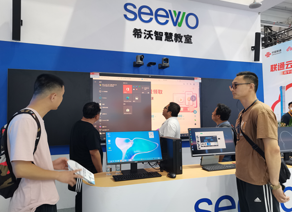 一臺國產(chǎn)電腦能幫老師實現(xiàn)高效備課、一臺大屏構(gòu)建多場景的智慧教室、遠程錄播助力智慧研訓(xùn)......在2023年北京服貿(mào)會的教育服務(wù)專題,希沃的智慧課堂展區(qū)頗為吸引觀眾,不禁感慨:“孩子們的上學(xué)環(huán)境變化很快,空間更智能了,場景也更多了。”