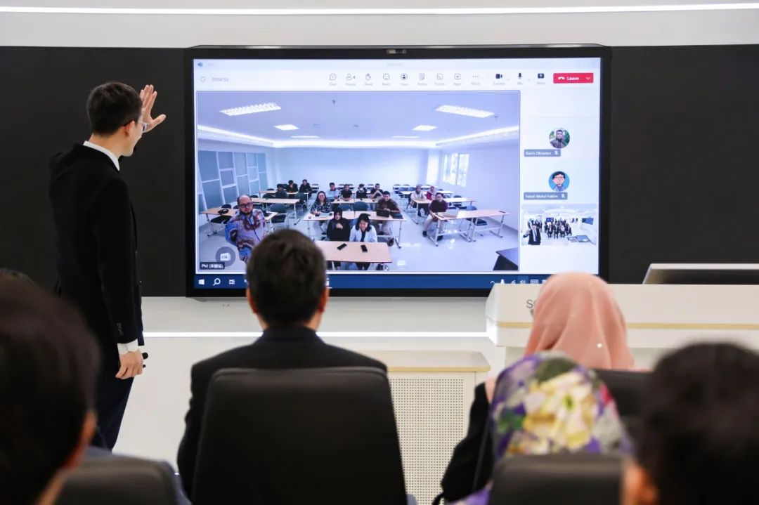 希沃,國內交互智能平板品類首創者,2012年-2023年連續12年蟬聯中國交互智能平板行業市占率桂冠*。作為行業標桿企業,希沃專注教育15年,已走進260萬間教室,擁有750萬白板用戶,和超過6億的課件資源*。視源股份首席戰略資源官段宇、海外事業群總裁蒙曉,對史忠俊大使、哈必芭博士以及東盟教育官員的到來表示熱烈歡迎,并詳細介紹了視源股份的發展歷程和教育數字化布局。