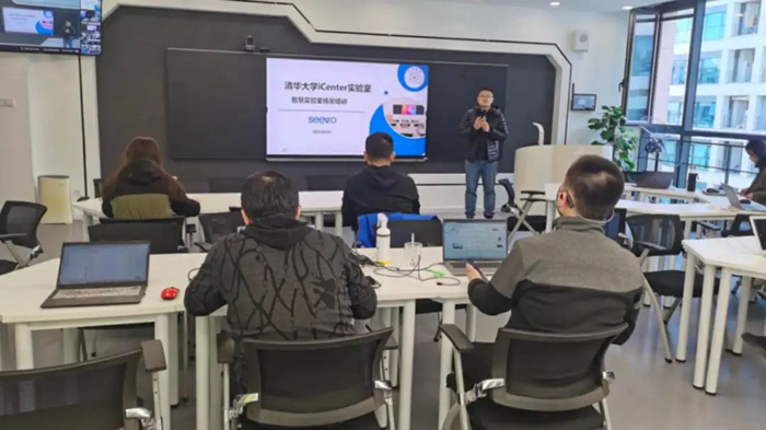 在清華大學(xué)的一間明亮且設(shè)計(jì)新穎的教室里,一名教師在大屏前操作,學(xué)生們分組坐在長桌子前拿著筆記本電腦操作……這是希沃與戴爾聯(lián)手構(gòu)建的清華大學(xué)人工智能實(shí)驗(yàn)室,這種以學(xué)生為中心的設(shè)計(jì)方式,更方便學(xué)生們開展小組研討與交流。