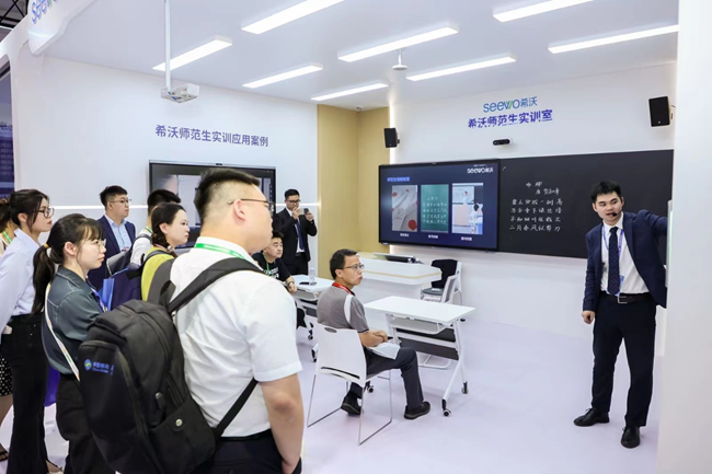 期間,教育數字化領域頭部企業希沃帶來搭載教學大模型的希沃第七代交互智能平板、希沃一體式教學終端N24、希沃品課2.0等硬件和軟件新品;同時展示了“五場景一平臺”高校解決方案,展示人工智能與數字化技術相結合,創新高等教育的教學新場景。
