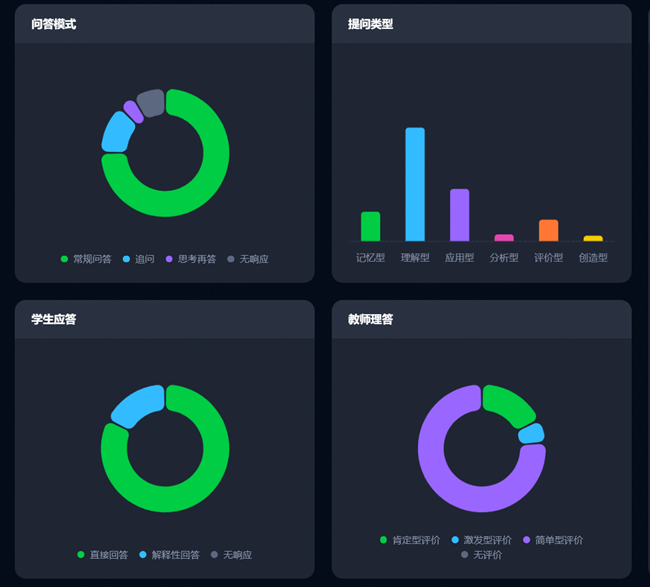 教研室宋主任表示,這是西吉縣首次通過AI技術(shù)在線支持教研協(xié)作和交流,本次活動(dòng)AI突出表現(xiàn)了信息技術(shù)在教研中的幾個(gè)優(yōu)勢影響。其一是培養(yǎng)教師的數(shù)據(jù)意識(shí),通過數(shù)據(jù)和圖表的形式可以關(guān)注到之前課堂中未被量化的指標(biāo),比如:講授時(shí)長、講授語速、問答次數(shù)、師生互動(dòng)次數(shù)、問答及互動(dòng)類型等,讓老師的教學(xué)質(zhì)量提升更有針對(duì)性;其二是借助高效的制度評(píng)價(jià)模式,能在短期內(nèi)更有針對(duì)性地為每一個(gè)教師自身素養(yǎng)量身打造對(duì)應(yīng)的提升思路,讓校本教研、區(qū)域智慧教研更高效、更智慧;其三是希沃AI建議中會(huì)包含知識(shí)點(diǎn)查看、新課標(biāo)建議,為課堂效果提升解讀思路。
