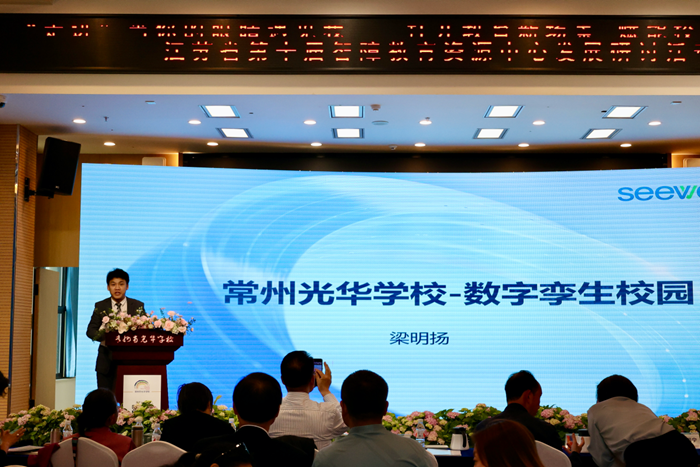 隨著人工智能在教育領(lǐng)域的迅速發(fā)展,數(shù)字化技術(shù)正成為特殊教育領(lǐng)域的一大助力。在活動(dòng)現(xiàn)場,希沃營銷代表梁明揚(yáng)向與會(huì)嘉賓介紹了希沃為常州市光華學(xué)校提供的數(shù)字孿生校園方案。
