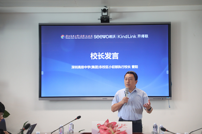 深圳市教育信息技術中心資源與應用發展部部長羅曉峰,深圳高級中學(集團)東校區小初部執行校長曹陽、科研處副主任吳恩康,希沃高級副總裁黃逸濤等相關負責人出席此次活動并發言。同時,活動邀請北京師范大學副教授張志禎,深圳市福田區教研員及一線教師結合希沃課堂智能反饋系統,以公開課形式實踐及研討智慧教育應用。