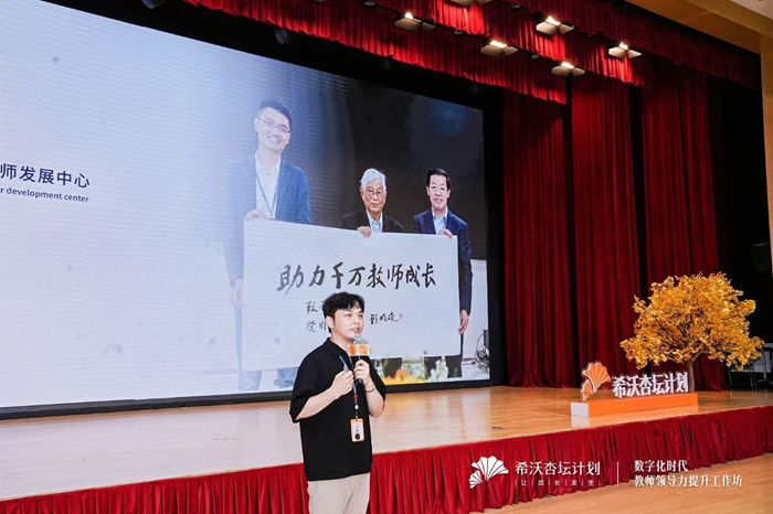 隨后,希沃杏壇計劃主理人梁杰向在場教師,詳細介紹了希沃杏壇計劃的設立起源及發(fā)展現(xiàn)狀,并進一步講解了與華南師范大學達成的產學研合作項目,及教師能力“杏壇導師八力模型”,其中,提及了學習力、信息力、設計力、分析力、教學力、協(xié)作力、指導力和領導力共八項專業(yè)能力。教師指導力、協(xié)作力,是引領教師團隊發(fā)展的重要維度。此次研修活動中將以教師領導力作為培訓目標,對教師指導力與協(xié)作力進行考察,助力教師回歸教師隊伍后,帶領更多教師成長,激發(fā)教師隊伍活力,切實發(fā)揮“以師育師”的作用。