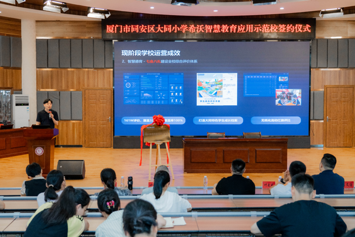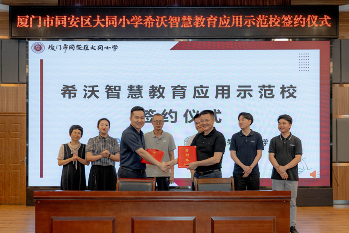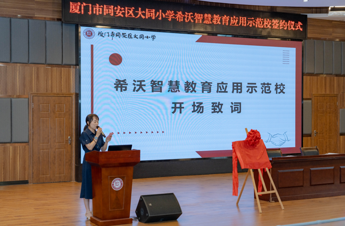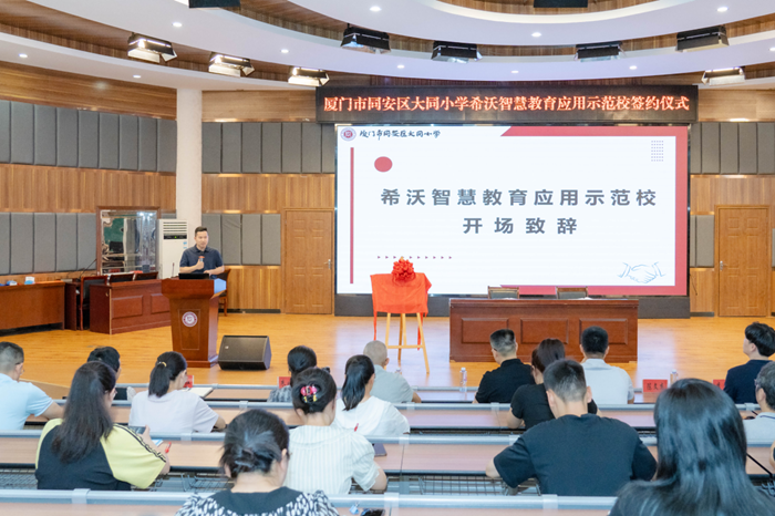為進(jìn)一步推進(jìn)智慧校園建設(shè),加快數(shù)字化與教育教學(xué)融合的創(chuàng)新發(fā)展,協(xié)助打造數(shù)字化應(yīng)用特色學(xué)校。6月14日上午,希沃聯(lián)合廈門(mén)市同安區(qū)大同小學(xué)舉行“希沃智慧教育應(yīng)用示范校”簽約及揭牌儀式。學(xué)校黨總支書(shū)記、校長(zhǎng)葉特愉帶領(lǐng)學(xué)校領(lǐng)導(dǎo)班子成員,年段長(zhǎng),學(xué)科組長(zhǎng)參加儀式。