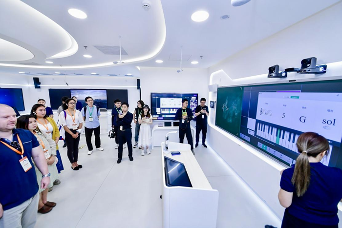 走進視源股份北京產業園,中美青年們在這里見識到了液晶顯示主控板卡、智慧協同平臺MAXHUB等產品,以及體驗了希沃智慧黑板、希沃白板、希沃學習機等各類教育數字化教學工具,感受中國數字教育的無限魅力。