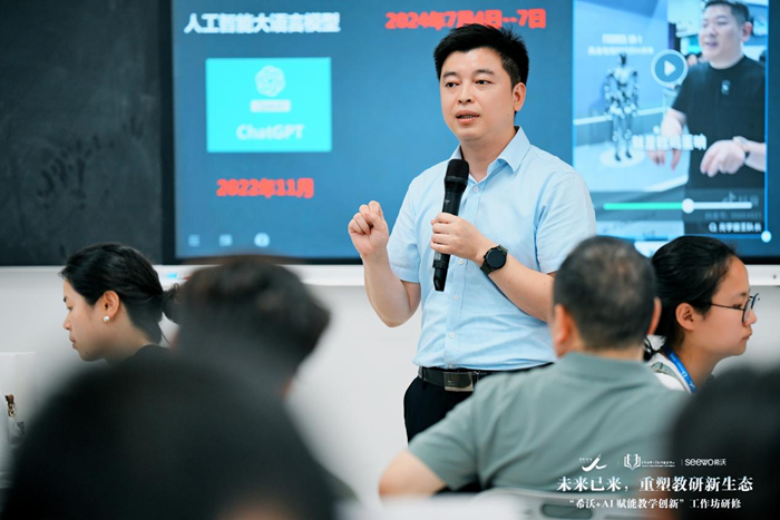 在新時代基礎教育教研工作的推進中,人工智能技術的應用日益受到重視。為響應《關于加強和改進新時代基礎教育教研工作的意見》與《基礎教育課程教學改革深化行動方案》,以及適應人工智能時代對教師專業發展提出的新要求,重慶市豐都縣教育委員會、豐都縣中小學教師發展中心與希沃合作,于2024年7月8日至9日在豐都育才中學舉辦了“希沃+AI賦能教學創新”工作坊研修活動。該活動旨在通過專題工作坊培訓,提高當地教研員的數字技術應用能力、信息素養和數據分析能力、創新思維和教學設計五大能力,并掌握生成式AI應用技能。