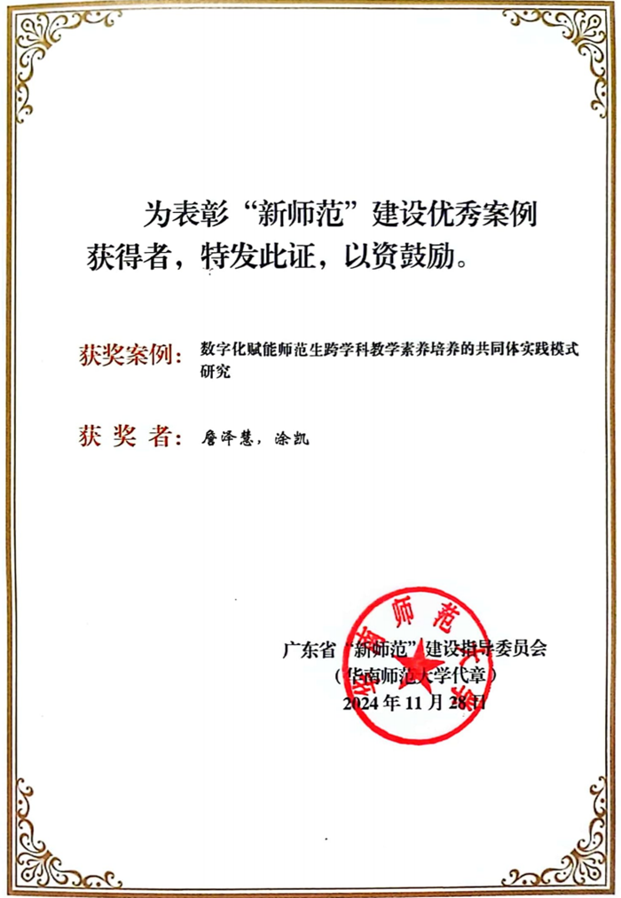 隨著數(shù)字時代的發(fā)展,師范院校在培養(yǎng)理念、專業(yè)提升途徑等方面發(fā)生了重要變化。如何利用數(shù)字化引領新教師提升學科素養(yǎng)和教學能力?如何培養(yǎng)具備創(chuàng)新思維、跨學科能力、良好道德品質(zhì)、國際視野以及持續(xù)學習能力的創(chuàng)新教師人才?近年來,廣東省內(nèi)多所高校通過校際合作、校企聯(lián)合不斷從多維度展開實踐探索,在“新師范”建設上取得了卓越成果。此次活動現(xiàn)場,由希沃與華南師范大學詹澤慧教授團隊合作搭建的“數(shù)字化賦能師范生跨學科教學素養(yǎng)培養(yǎng)的共同體實踐模式研究”項目便榮獲華師大特等獎榮譽,并成功入選廣東省“新師范”建設優(yōu)秀案例,以切實可行的數(shù)字化路徑為區(qū)域新師范人才隊伍建設指明了方向。