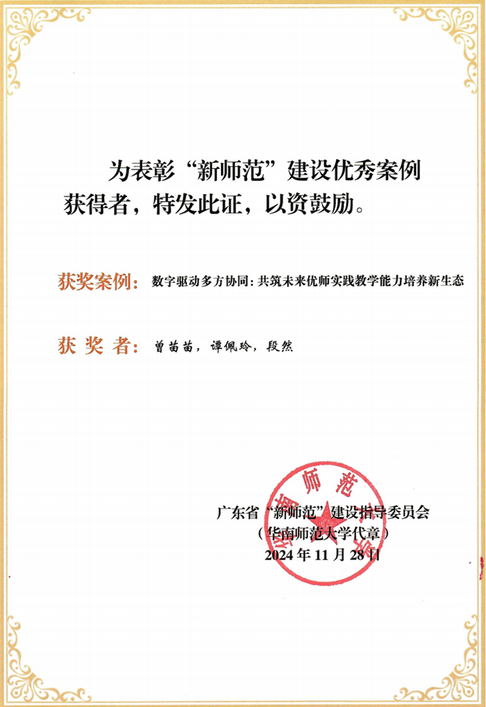 而在肇慶學院文學院,希沃的師范生AI系統(tǒng)也在持續(xù)釋放能量,其“數(shù)智賦能,師范卓越:師范生教學新形態(tài)體系的構(gòu)建與成果綻放”項目成功入選廣東省“新師范”優(yōu)秀案例100例,為推動“大國良師”的培養(yǎng)再添火花。