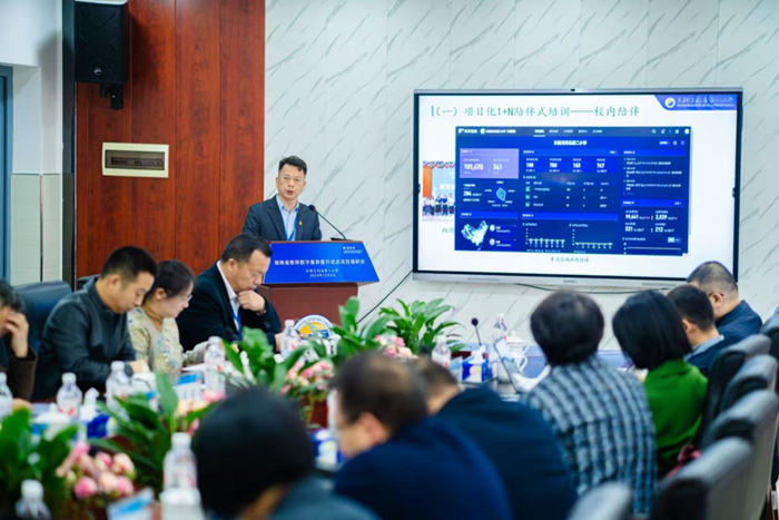 在主題講座環節,望城區中小學教師發展中心副主任殷華以《融合創新,培訓共生,構建教師數字素養提升的望城模式》為題,詳細介紹了望城區教師數字素養提升試點的工作機制、實施模式與推進路徑,并著重介紹了“陪伴式”培訓模式的實踐探索。該模式通過數智化手段實現教師培訓的全過程陪伴,有效提升了培訓的效果。望城區中小學教師發展中心主任周國慶則作了題為《構建數智化支持體系,提升教師數字素養》的專題報告,從望城區教育發展的基本情況出發,闡述了構建數智化支持體系的必要性和可行性。湖南省中小學教師發展中心信息技術科科長楊予平作了題為《能力提升工程2.0工作總結暨教師數字素養提升工作思路》的專題報告,總結了湖南省信息技術應用能力提升工程的發展歷程和取得的成績,并詳細介紹了推進教師數字素養提升的政策、思路、做法及策略。