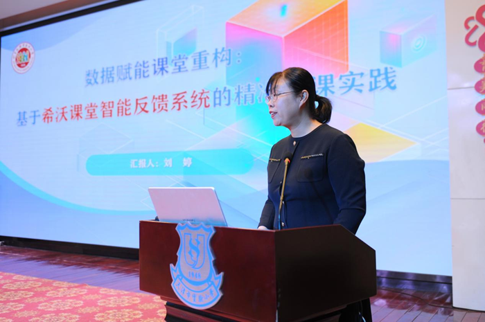 新華南路小學的劉婷主任則以《數據賦能課堂重構:基于希沃課堂智能反饋系統的精準研課實踐》為題,分享了基于實證反饋的教學研究成果。