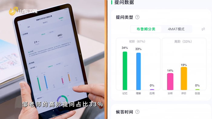 與此同時,希沃課堂智能反饋系統也通過課堂互動切片、AI建議等實時分析,變身“希沃AI課評員”,解讀教學行為類型占比、問答類型等客觀數據,為老師提供復盤優化的建議。譬如,當老師使用AI課評,發現課堂上互動問答的比例過低,便能調整講課的方式,打造讓學生更感興趣的課堂。