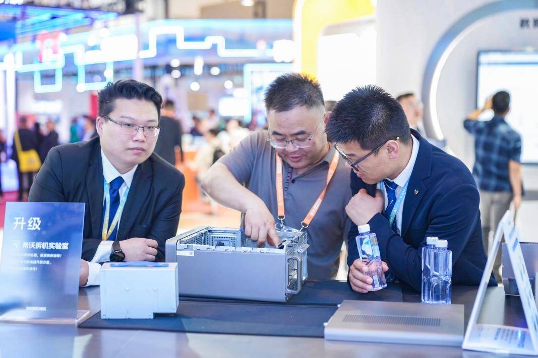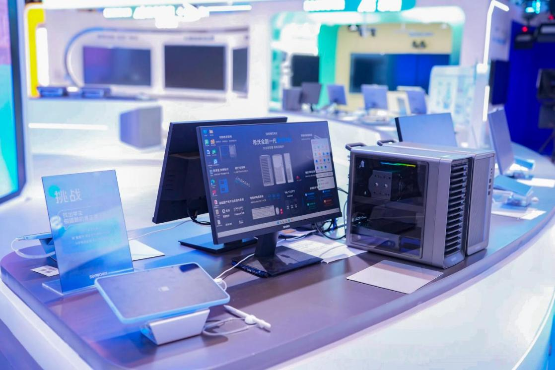 希沃帶來AI升級(jí)計(jì)算終端,打造出“更懂老師的電腦”。希沃首款榫卯架構(gòu)的計(jì)算機(jī)終端是現(xiàn)場的看點(diǎn)。據(jù)悉,希沃自研“榫卯”的機(jī)箱架構(gòu),采用了獨(dú)特的榫卯架構(gòu),通過模塊化設(shè)計(jì)實(shí)現(xiàn)“免工具”維護(hù),大幅降低設(shè)備維護(hù)成本。希沃商用計(jì)算機(jī)副總經(jīng)理郭瀟介紹這款明星產(chǎn)品:“我們帶來的榫卯機(jī)器可不借助工具,徒手完成拆改。有藍(lán)色標(biāo)識(shí)的地方都可以直接插拔的,這樣讓整個(gè)維護(hù)工作變得非常簡單。”